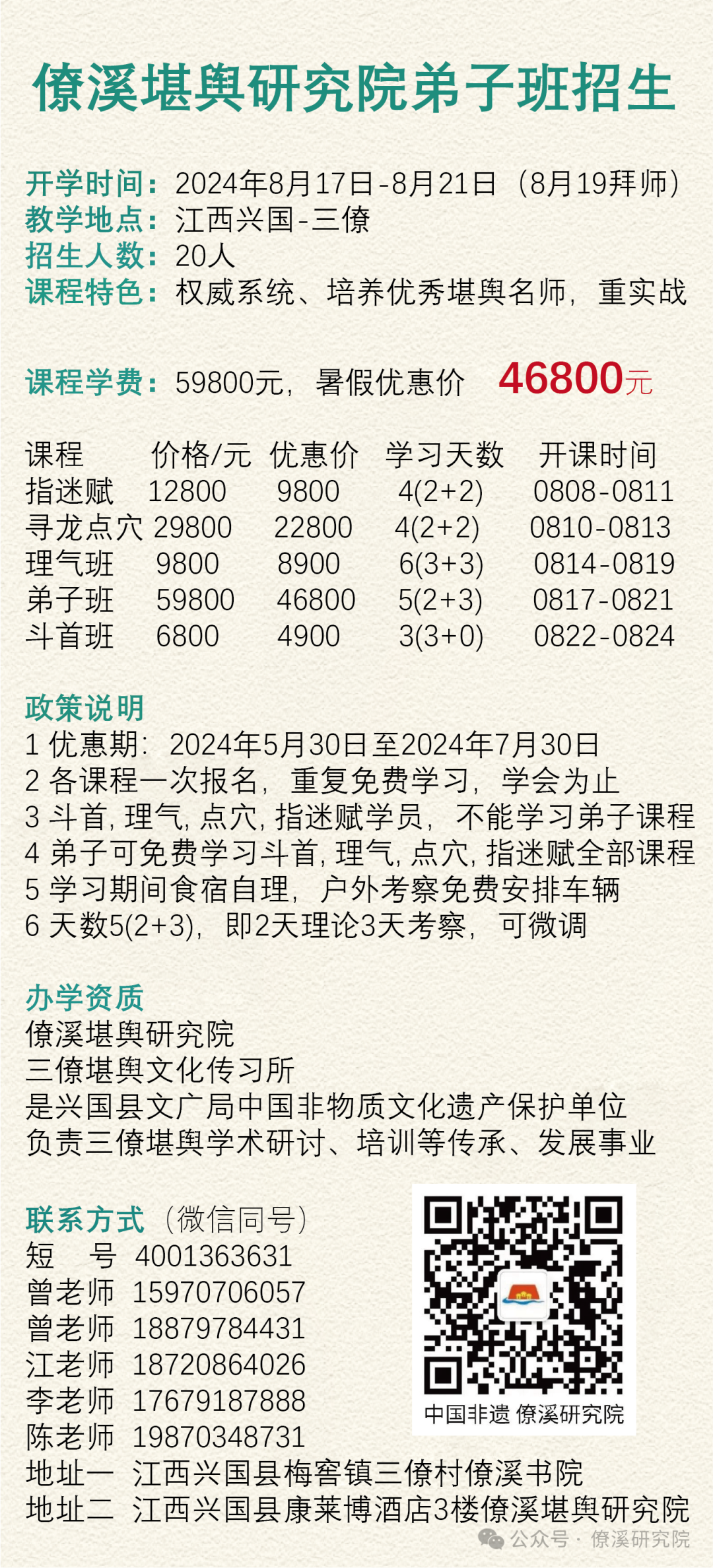 Important announcement: The Feng Shui training course originally scheduled to be held from July 17 to August 2, 2024 at the Liaoxi Research Institute, including five courses on finger riddles, searching for dragon acupoints, regulating qi, disciple classes, and head fighting classes, will be rescheduled. Students and old and new disciples who wish to participate in this year’s summer training can register in advance for the June schedule or postpone their participation in the August schedule courses. We deeply apologize for any inconvenience caused and will continue to uphold innovative concepts, promote the inheritance and dissemination of intangible cultural heritage, and serve the public.