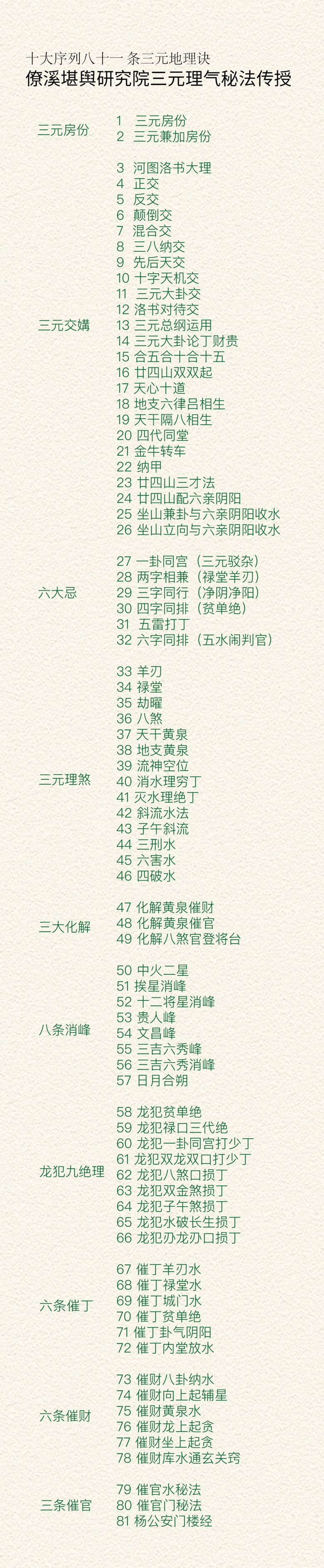 Kanyu Li Qi is the integration of Neo Confucianism and Qi studies in the Song and Ming dynasties. The philosophical speculation of geomancy deeply influenced people’s hearts, and had a profound impact on society after the Song Dynasty, profoundly influencing people’s concepts and behaviors. The 81 mnemonics of San Liao Ming Shi are essential skills for ancient geomancy Ming Shi to travel among the people.